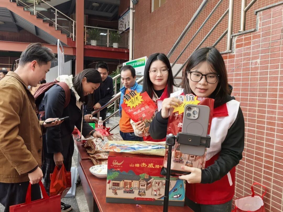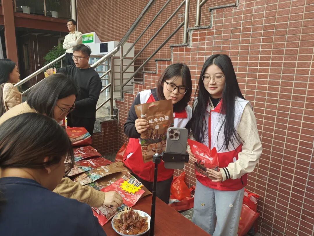 志愿者李东颖、徐静仪运营“山塘杰威腊味”直播