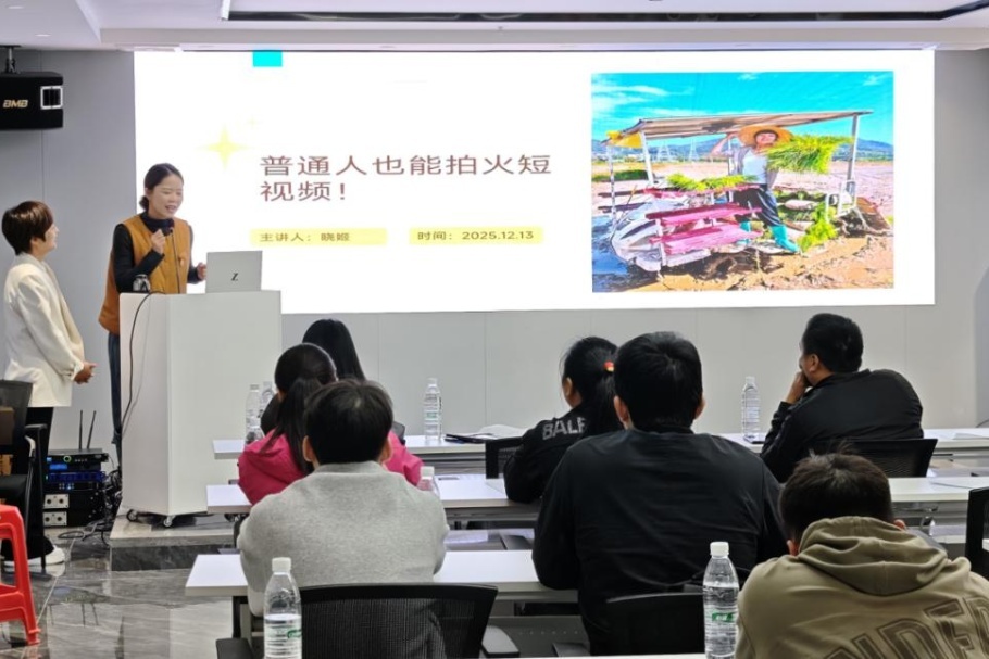 团清新区委精准对接供销社为农服务需求,联合清新区乡村振兴人才驿站、清新区供销社打造“农文旅创业青年电商人才培育”系列活动,构建“培训+实践”双轮驱动模式,为乡村电商产业培育骨干力量。团清新区委选派5名“百千万工程”志愿者全程参与。在系统化培训中,志愿者们深入学习了政策解读、平台运营、内容创作及直播实战等课程模块,从产品包装设计、直播话术技巧到流量运营策略,接受了全方位、阶梯式的电商技能锤炼,为投身实战打下坚实理论基础。